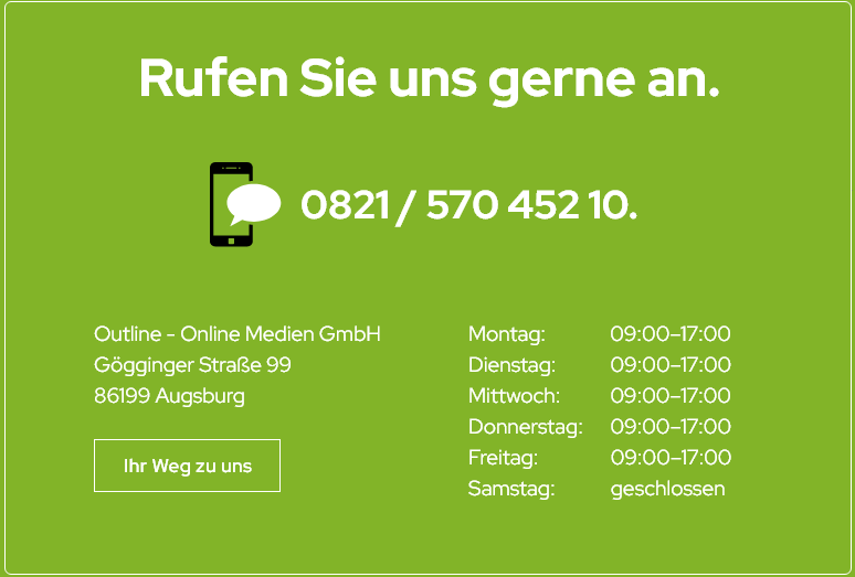 OUTLINE ist bescheiden in Versprechungen: Erreichen Sie mehr qualifizierte Interessenten. Bauen Sie auf Kundenzufriedenheit. Und arbeiten Sie flexibel. Bleiben Sie freundlich. Mit uns werden Sie besser abschneiden als erwartet. Deutlich besser. Agentur Outline Augsburg Kontakt.